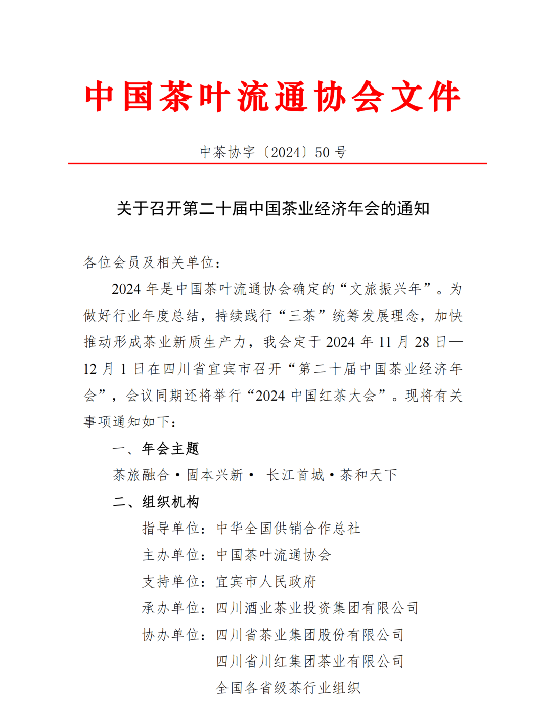 关于邀请参加2024“川红工夫”杯全国红茶新茶饮产品研发推广活动的通知