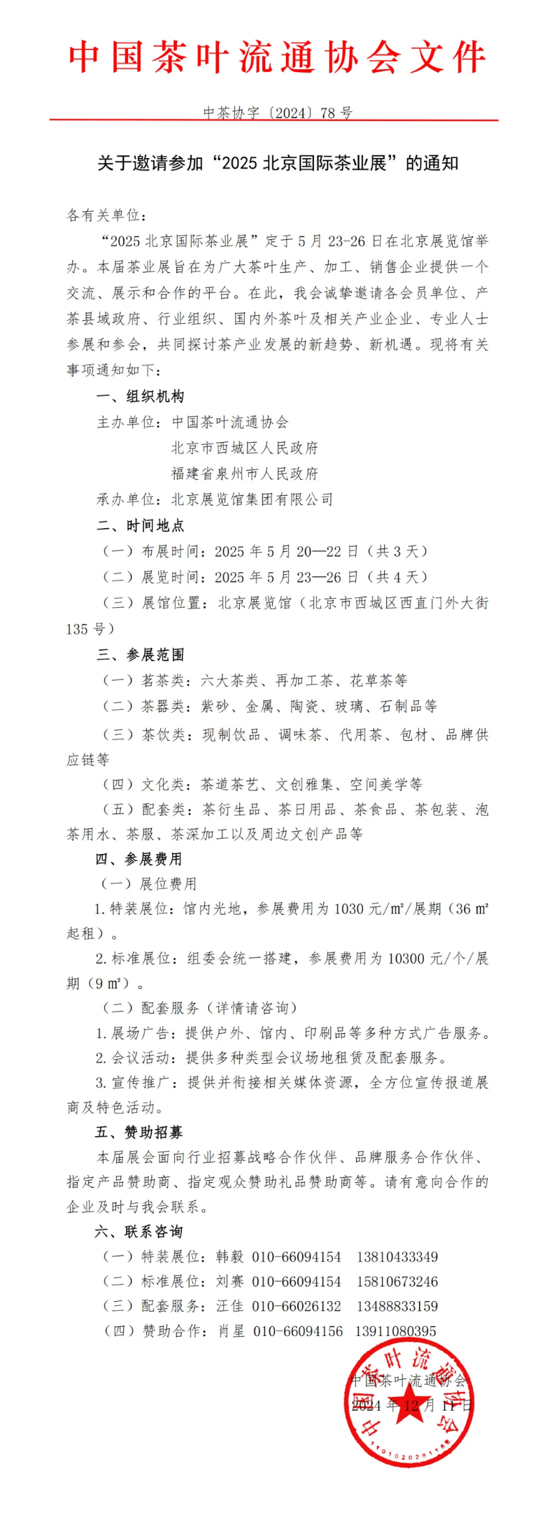 关于邀请参加“中国茶叶流通协会抹茶专业委员会成立会议 2024抹茶展销对接活动”的通知