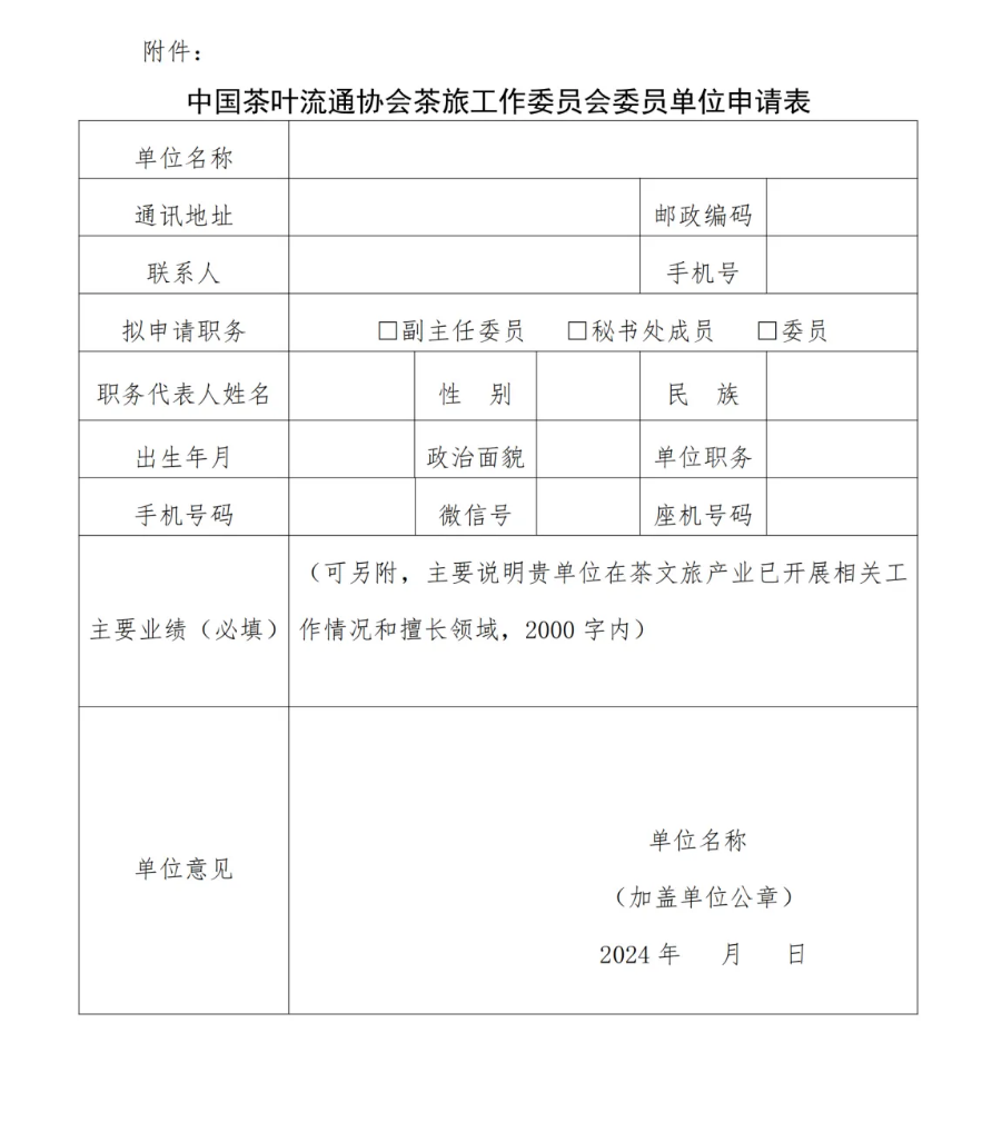 关于招募中国茶叶流通协会茶旅工作委员会委员单位的通知