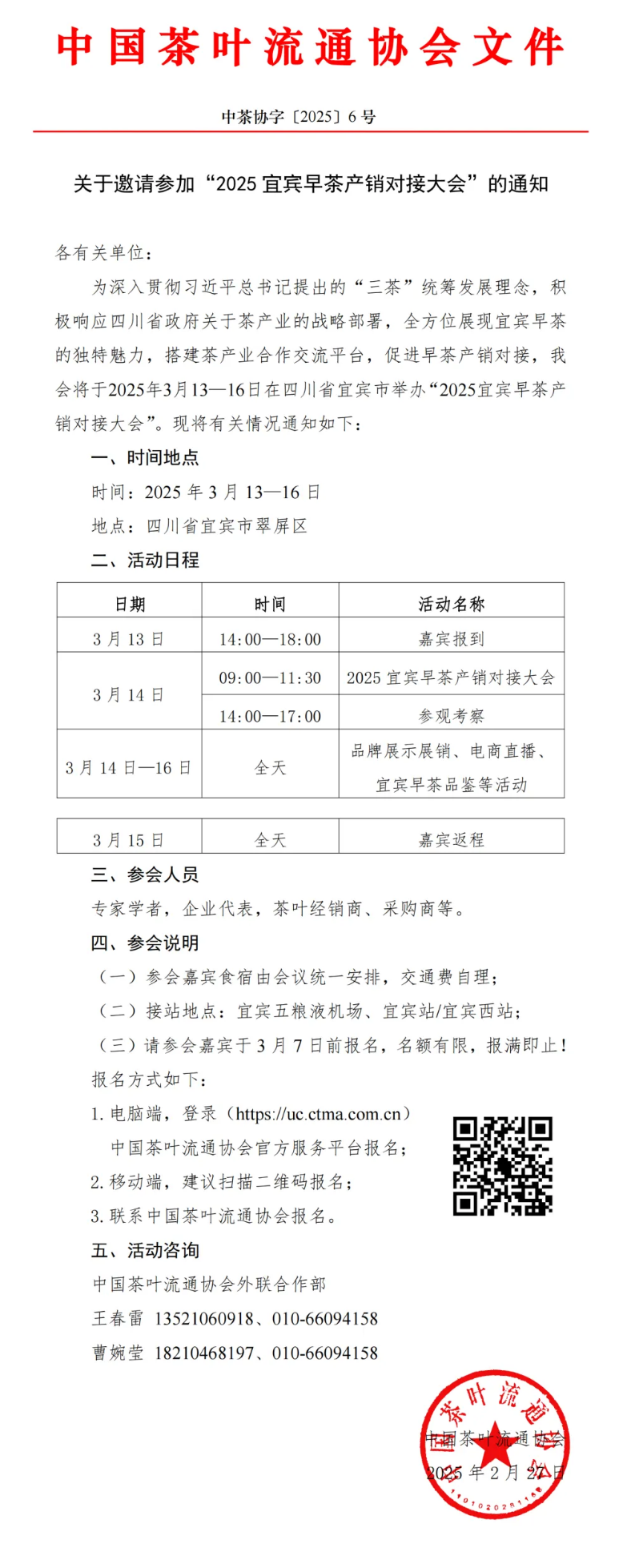 关于邀请参加“2025宜宾早茶产销对接大会”的通知