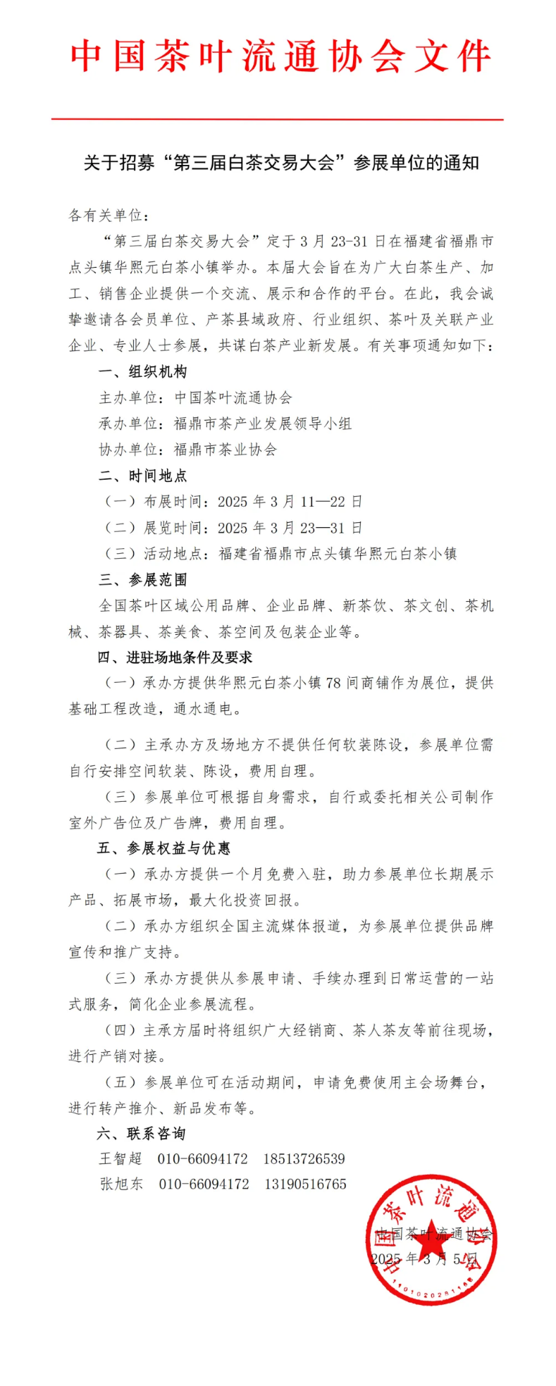 关于招募中国茶叶流通协会青年工作委员会第一届委员的通知