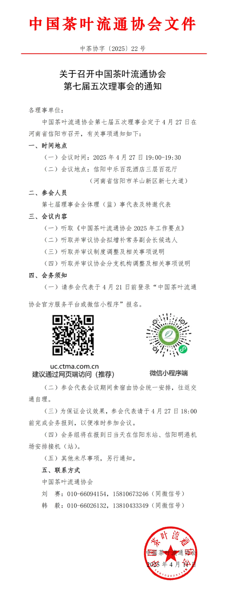 关于召开中国茶叶流通协会第七届五次理事会的通知