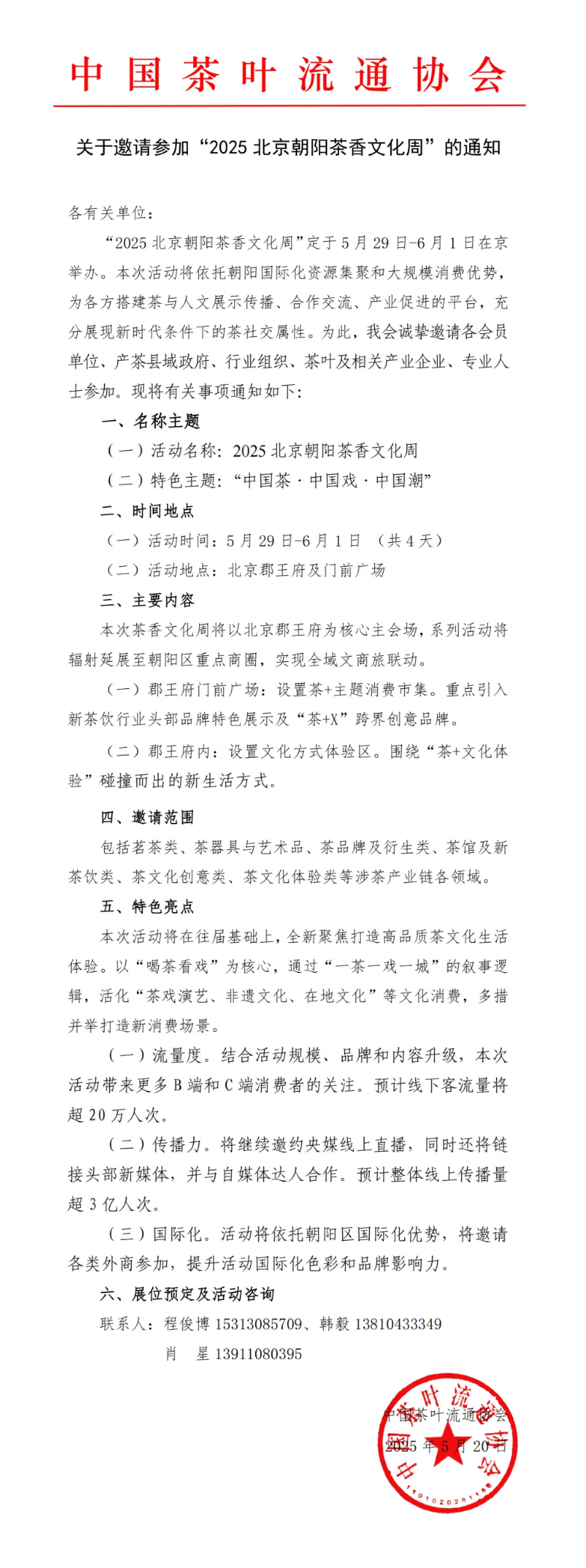 关于邀请参加“2025北京朝阳茶香文化周”的通知