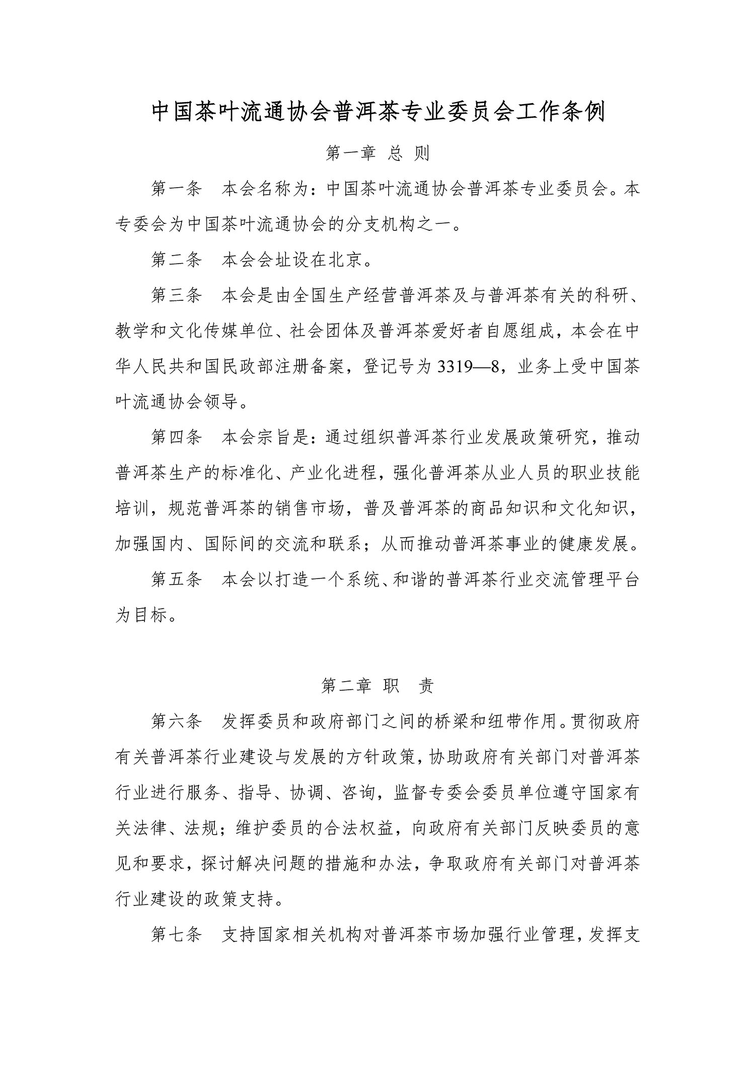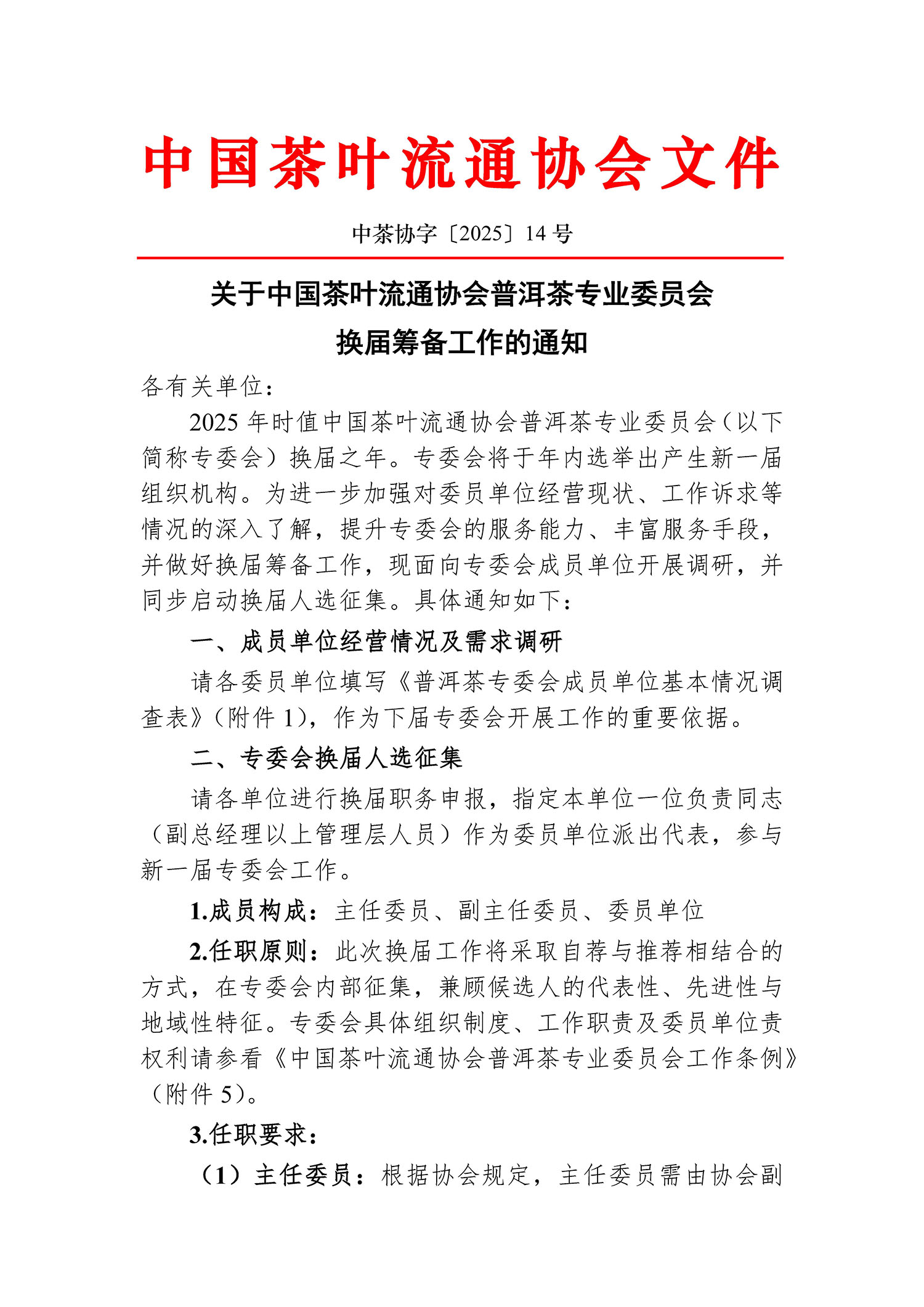 关于中国茶叶流通协会普洱茶专业委员会换届筹备工作的通知