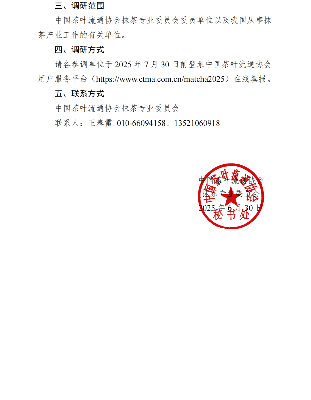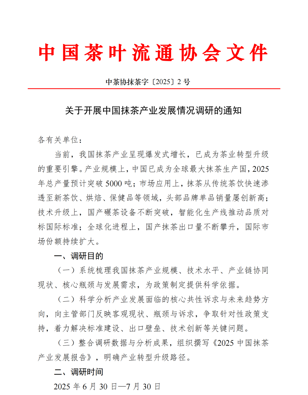 关于开展中国抹茶产业发展情况调研的通知