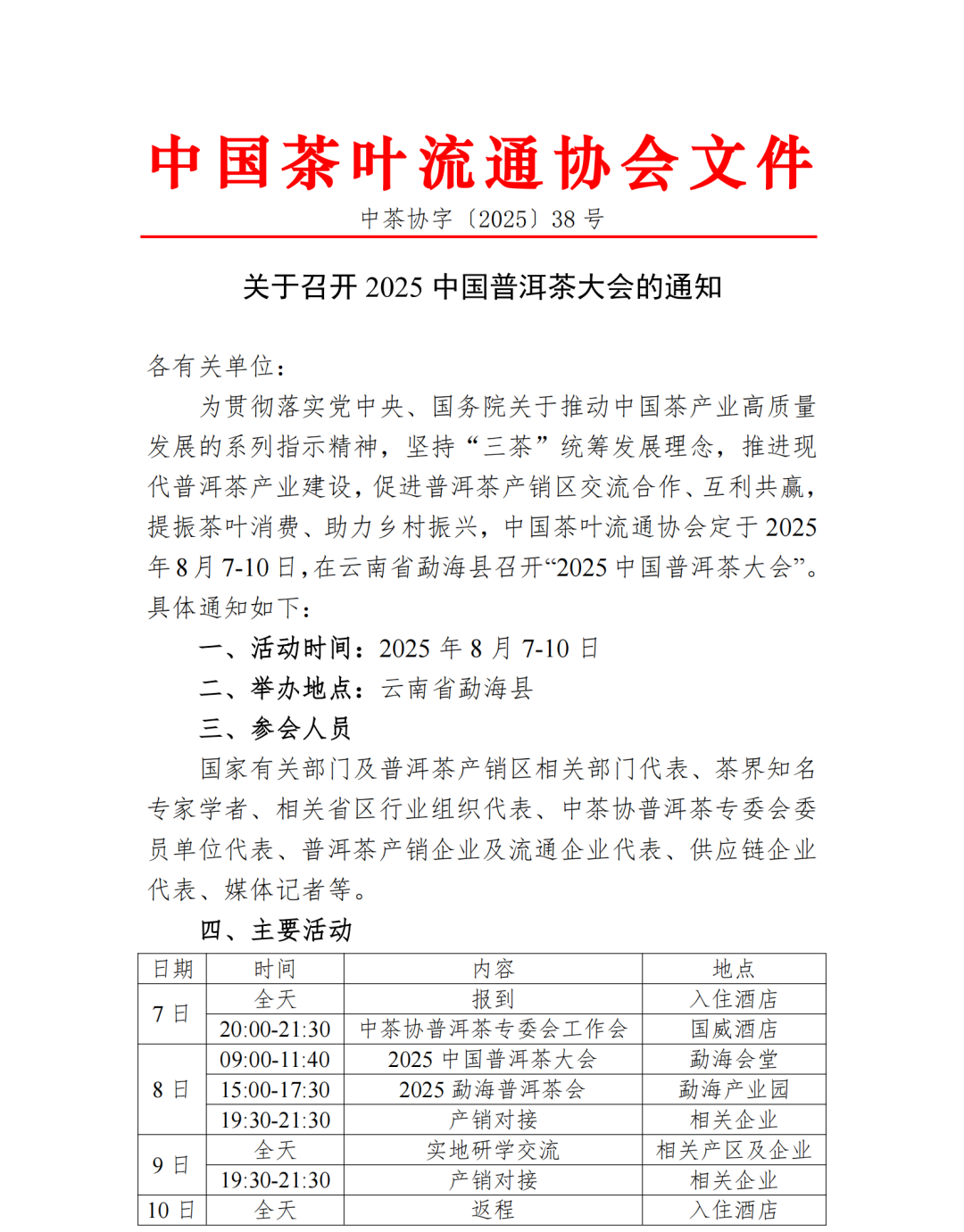 关于召开2025中国普洱茶大会的通知