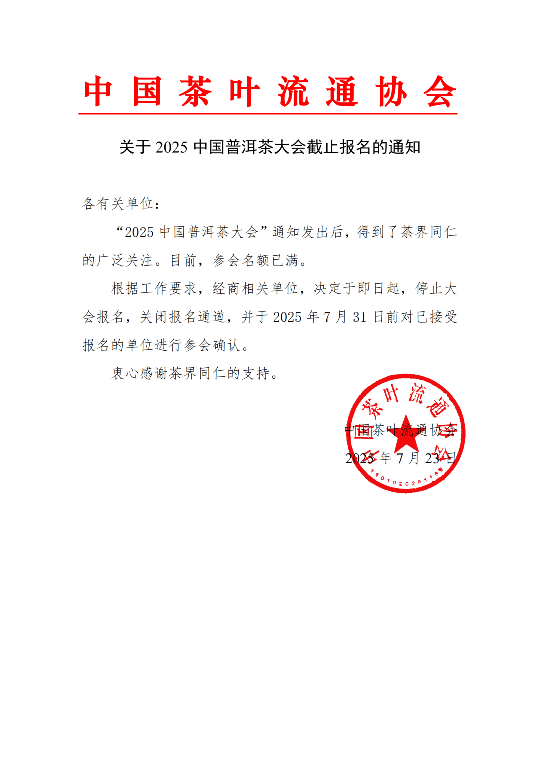 关于延长“中国茶叶流通协会2025年度产茶县域调查工作”的通知