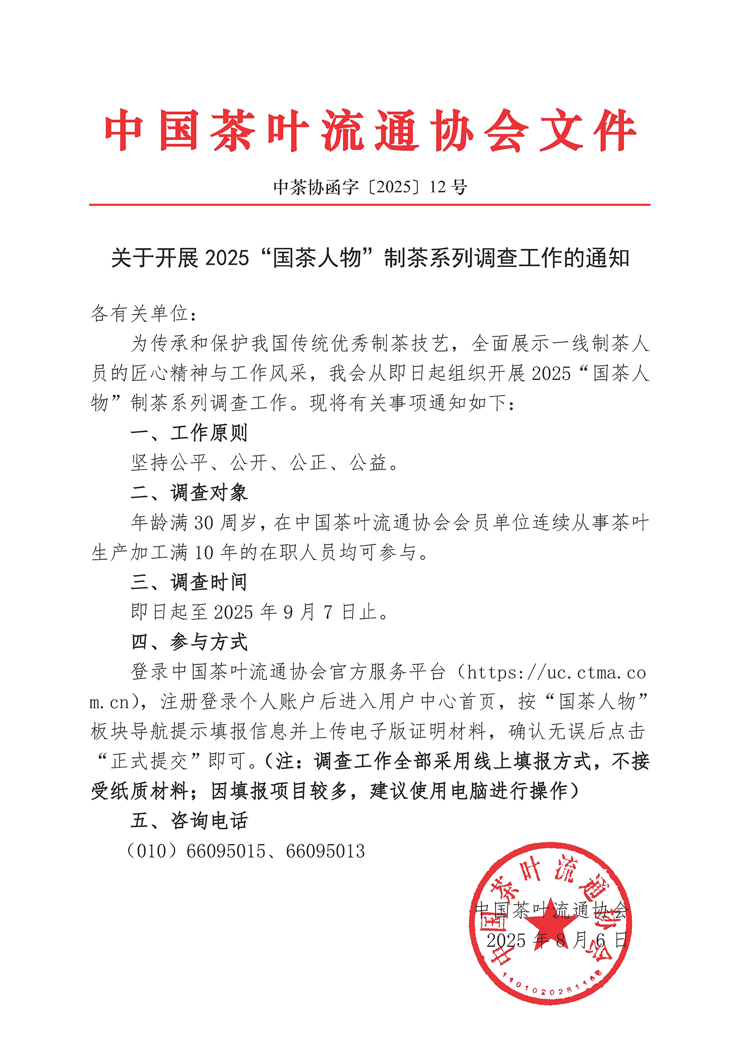 关于开展2025“国茶人物”制茶系列调查工作的通知