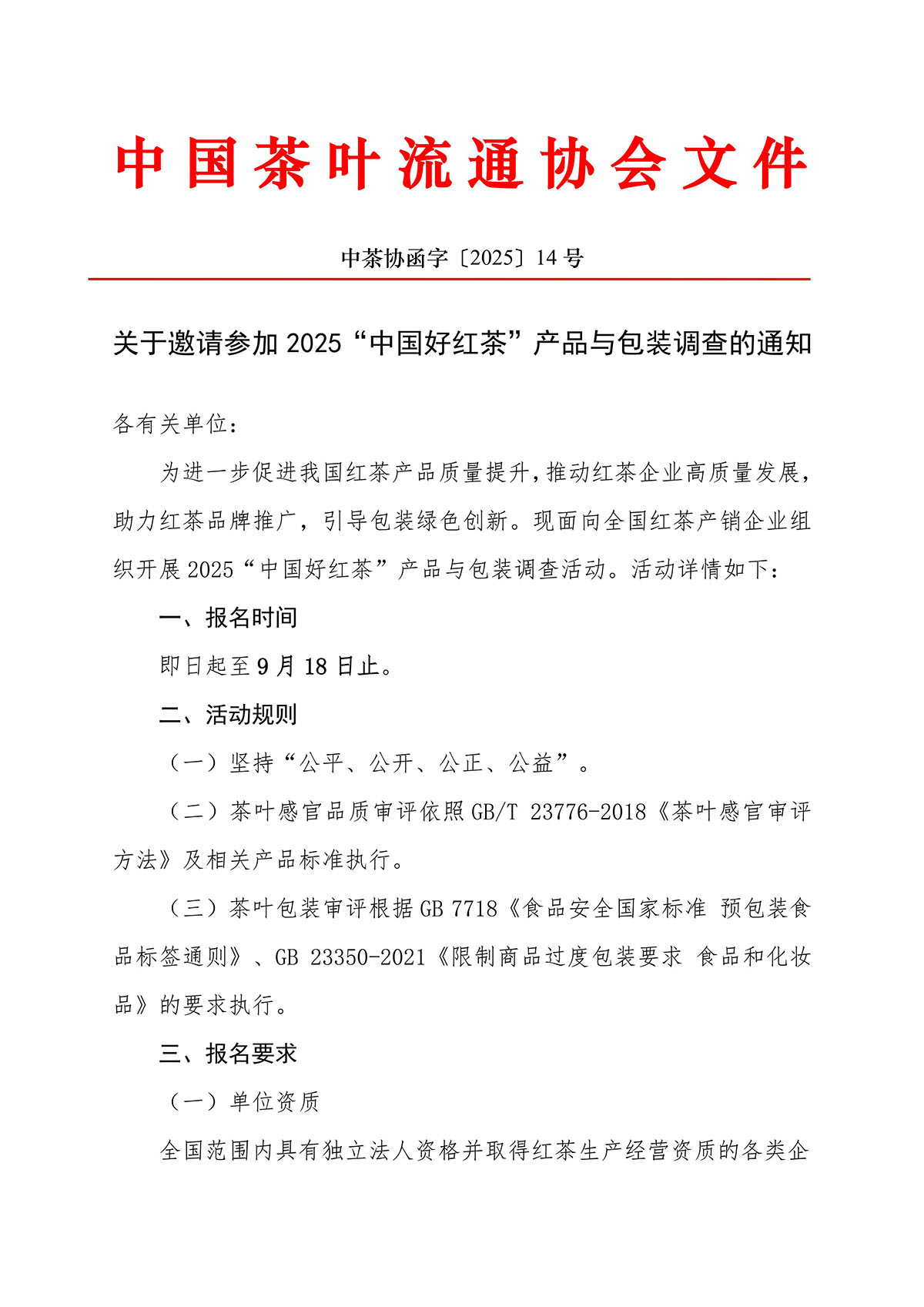 关于邀请参加2025“中国好红茶”产品与包装调查的通知