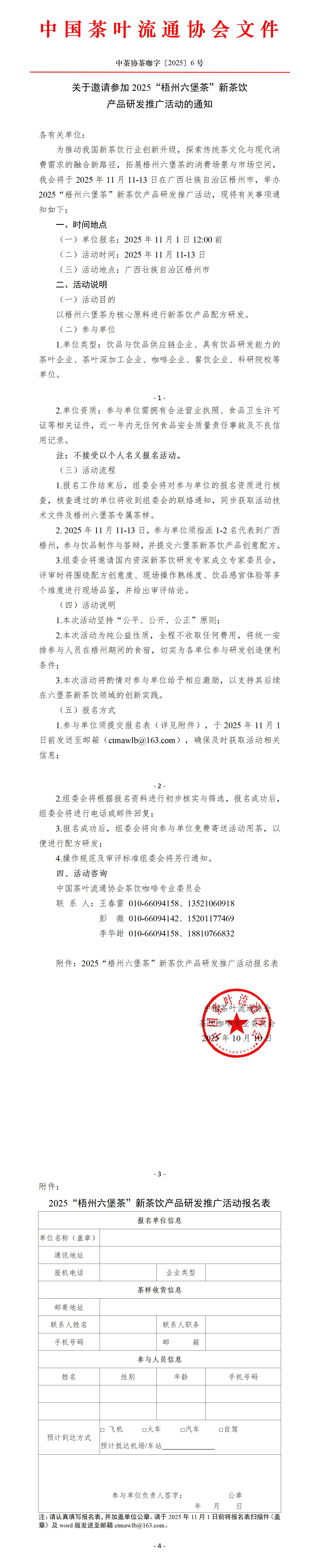 关于邀请参加2025“梧州六堡茶”新茶饮产品研发推广活动的通知