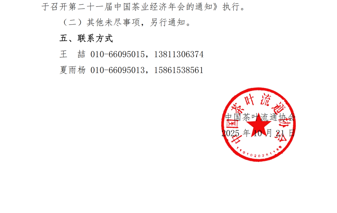关于召开第二十一届中国茶业经济年会的通知