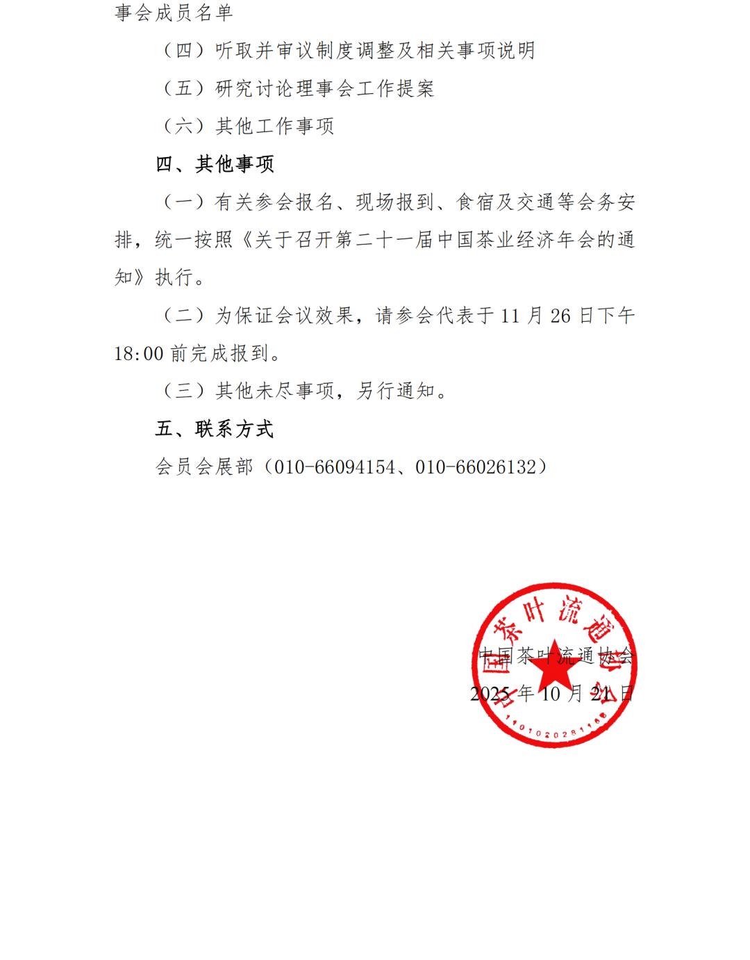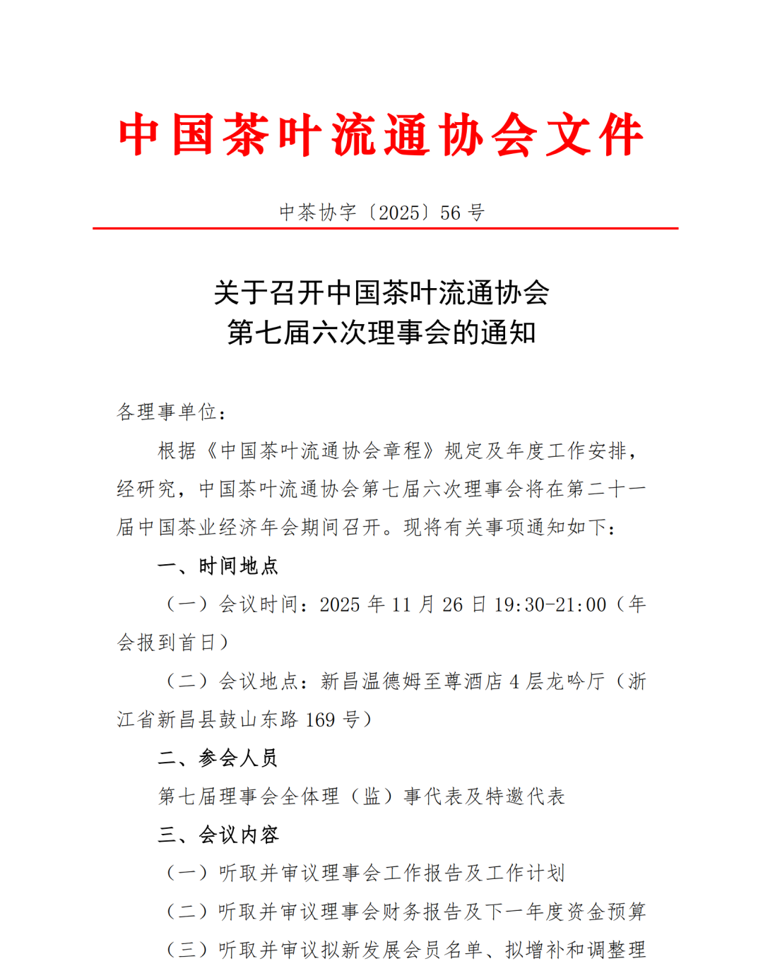 关于召开中国茶叶流通协会第七届六次理事会的通知