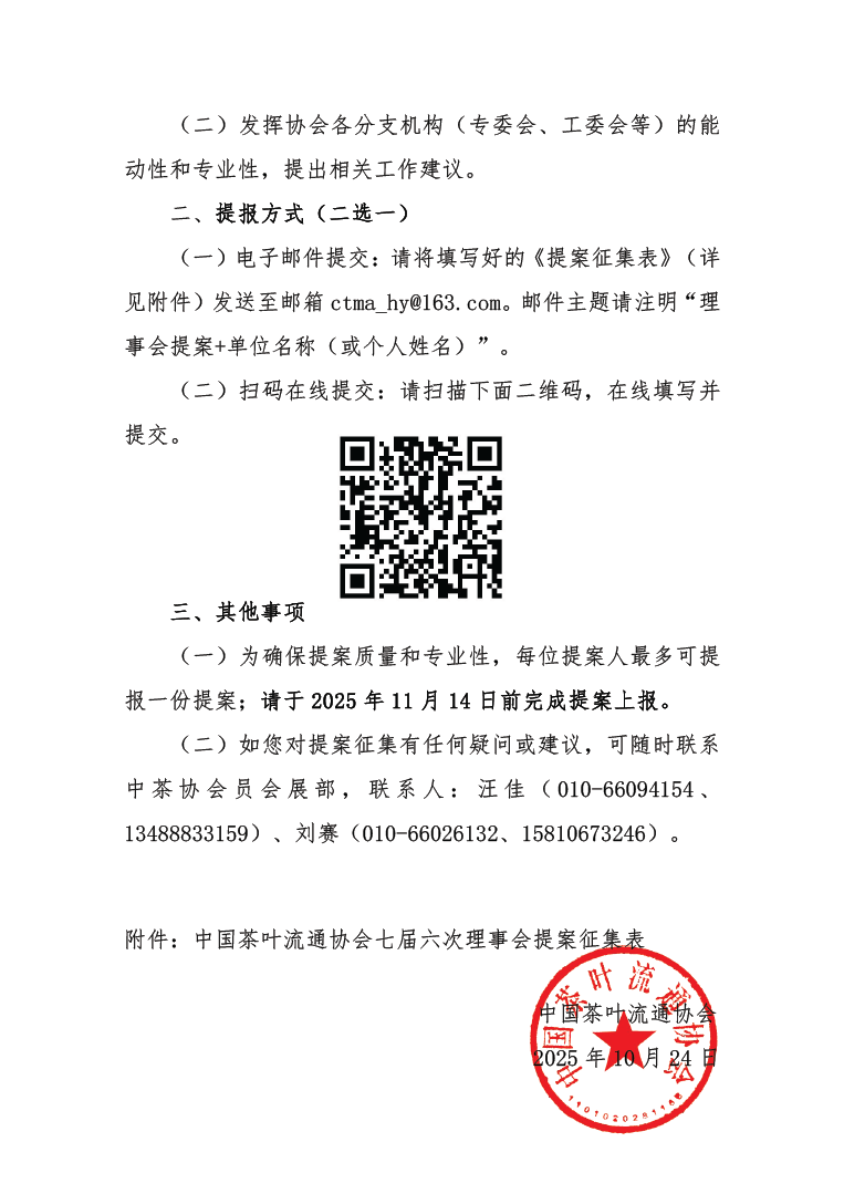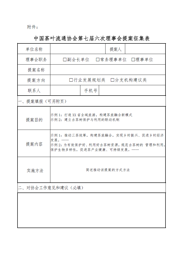 点击下载中国茶叶流通协会第七届六次理事会提案征集表