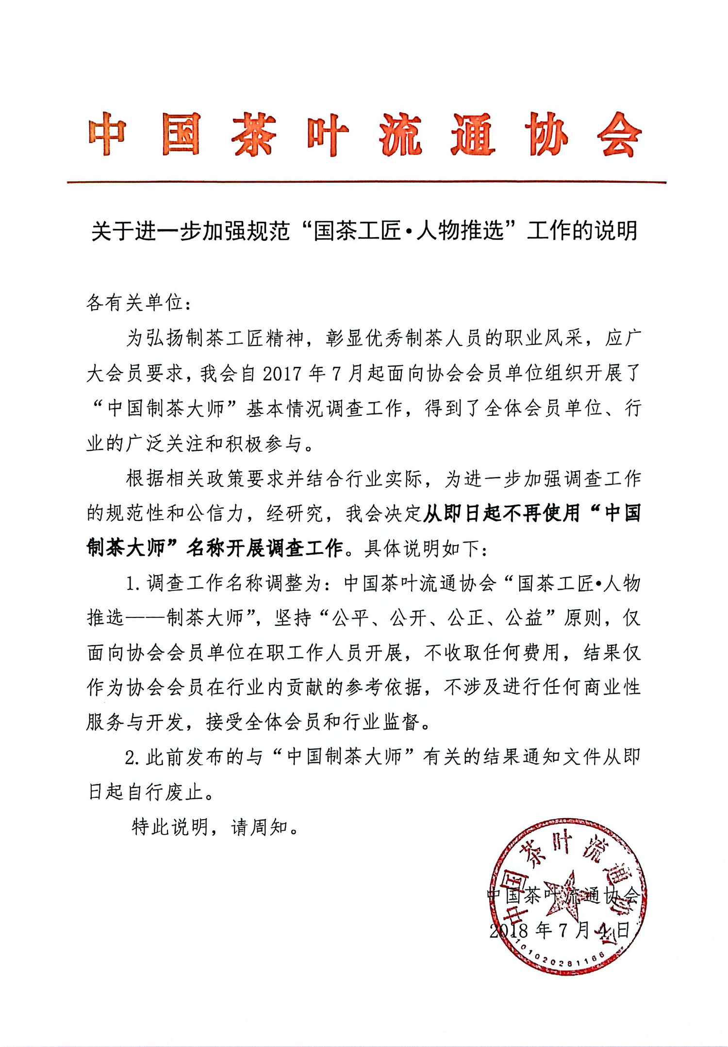 关于进一步加强规范“国茶工匠·人物推选”工作的说明