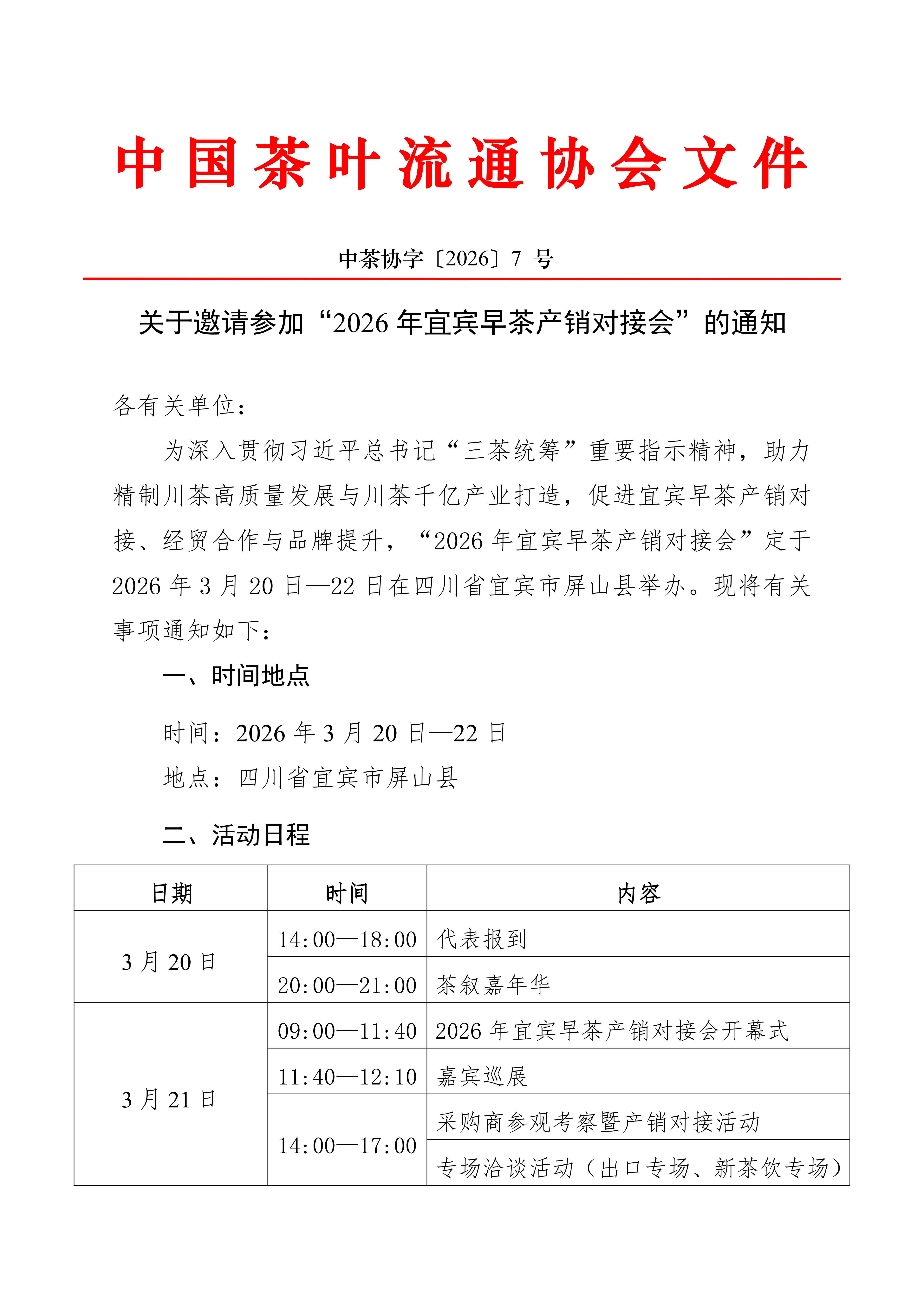 关于邀请参加“2026年宜宾早茶产销对接会”的通知